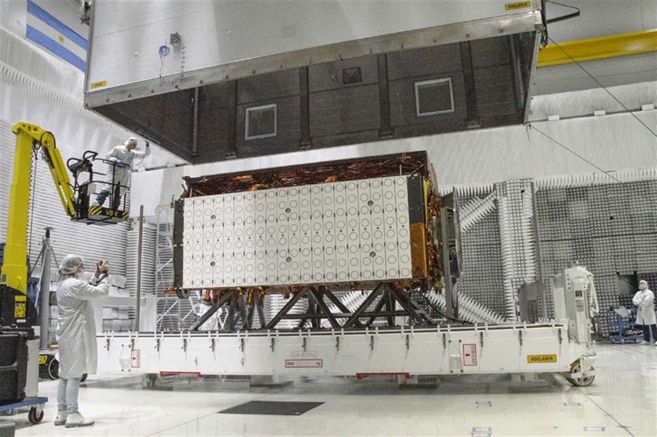 Entre hoy y pasado mañana, el satélite pasará la última prueba dentro del contenedor. Si todo sale dentro de lo previsto por los expertos, se lo sellará electromagnéticamente para evitar que en el traslado cualquier radar pueda dañarlo.